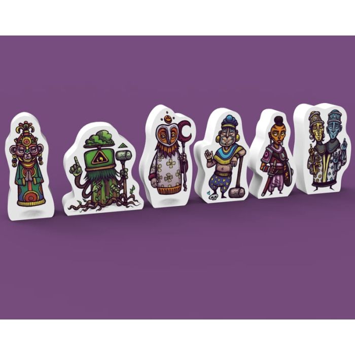 Il set è formato da sei meeple in edizione limitata che rappresentano questi personaggi straordinari e aiutano a tenere traccia del punteggio alla fine del gioco. Basta mettere il meeple sulla prima carta a destra e spostarlo sulla carta successiva per contare i punti. In questo modo è possibile tenere traccia dei punti senza dover girare tutte le carte a faccia in giù.